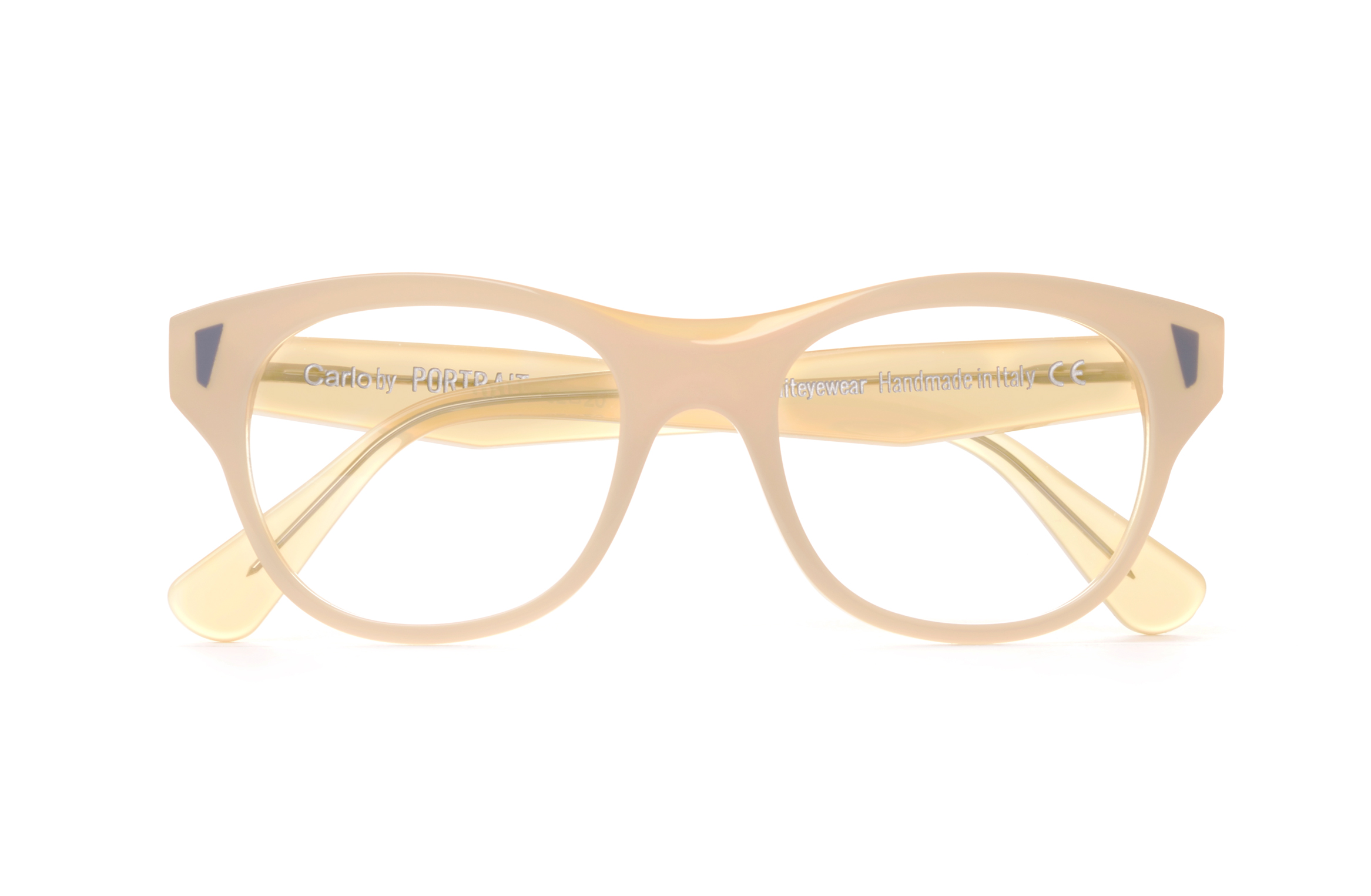 Opaque sand frame + grey inlays. Translucent honey temples. Glossy finish. Handmade in Italy Eyeglasses.